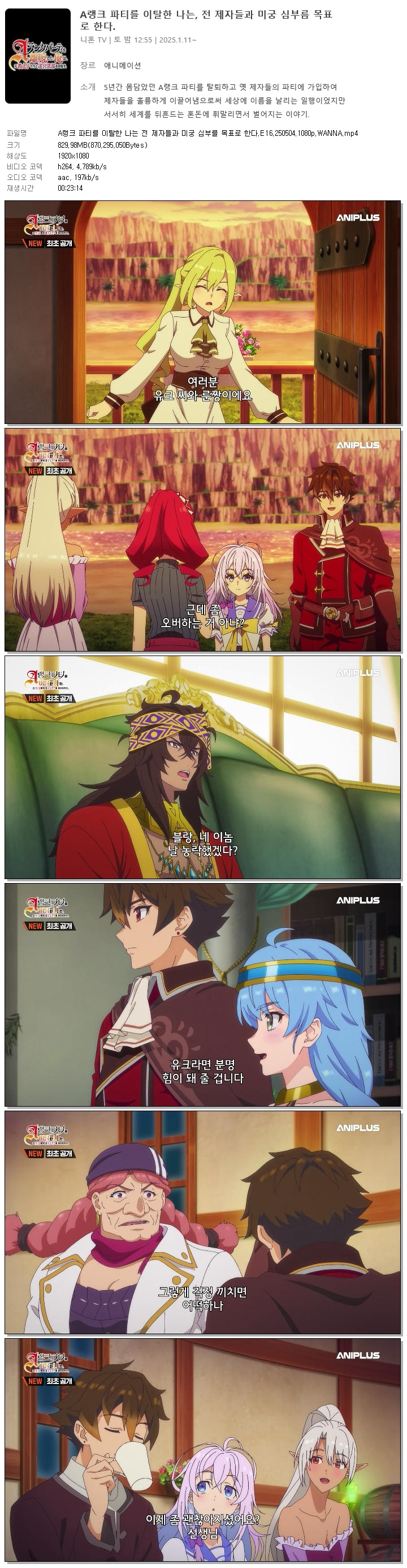 A랭크 파티를 이탈한 나는 전 제자들과 미궁 심부를 목표로 한다.E16.250504.1080p.WANNA