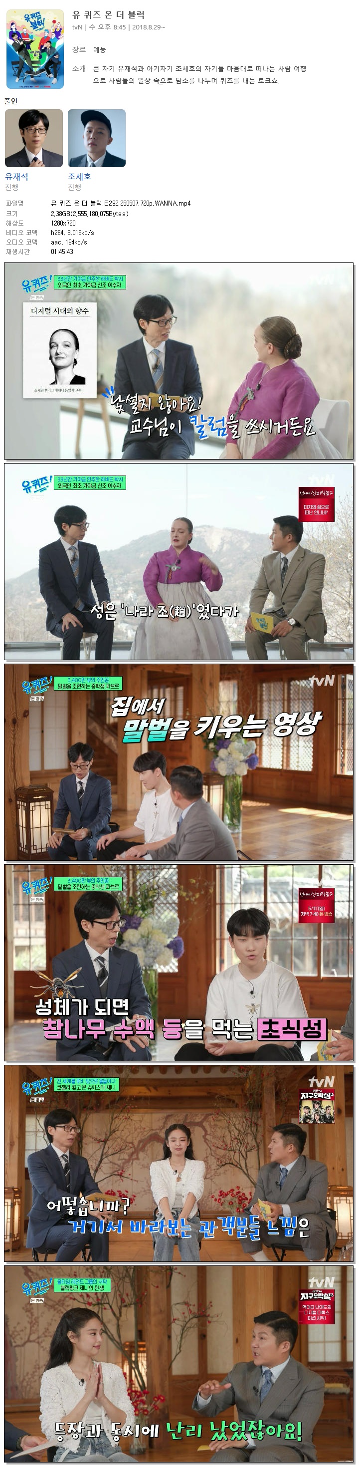 [TVN] 유 퀴즈 온 더 블럭.E292.250507.720p.WANNA[제니, 조세린]