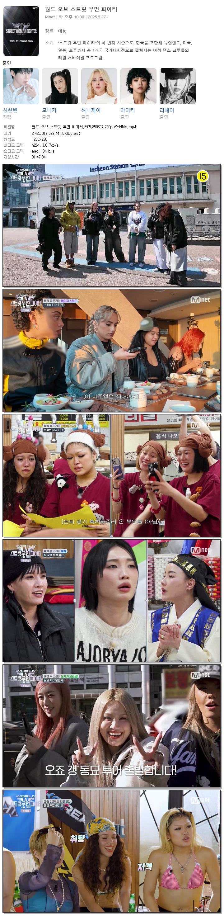 [M.net] 월드 오브 스트릿 우먼 파이터.E05.250624.720p.WANNA[허니제이, 립제이].mp4 2.4 G MP4 01:47:34 1280x720
