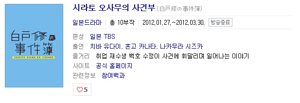 ico시라토 오사무의 사건부 10부작 (치바 유다이, 혼고 카나타, 나카무라 시즈카)/