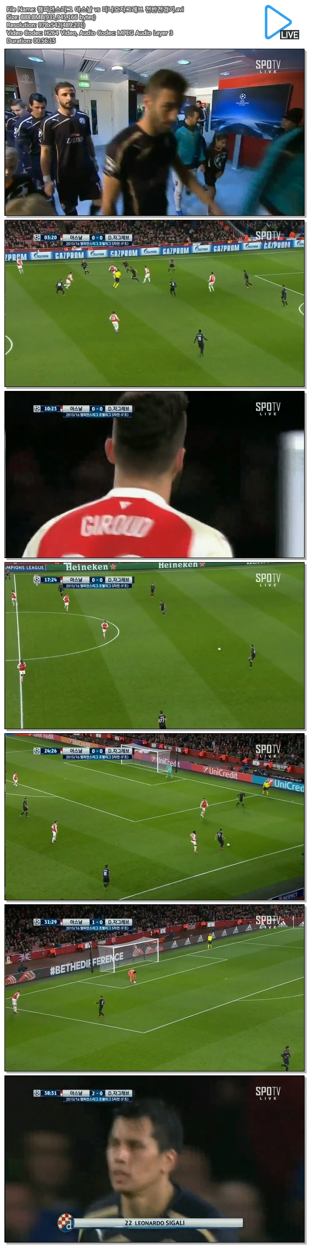 챔피언스리그 아스날 vs 디나모자그레브 151125 [국내방송]/