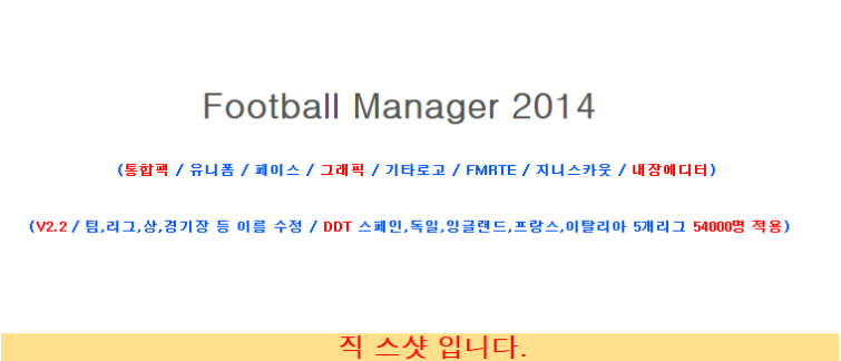 FM2014 통합팩 유니폼 페이스 그래픽 기타로고 한글 노설치 풋볼매니져