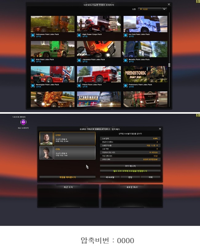통합 DLC UP [무설치 K] Euro Truck Simulator 2/