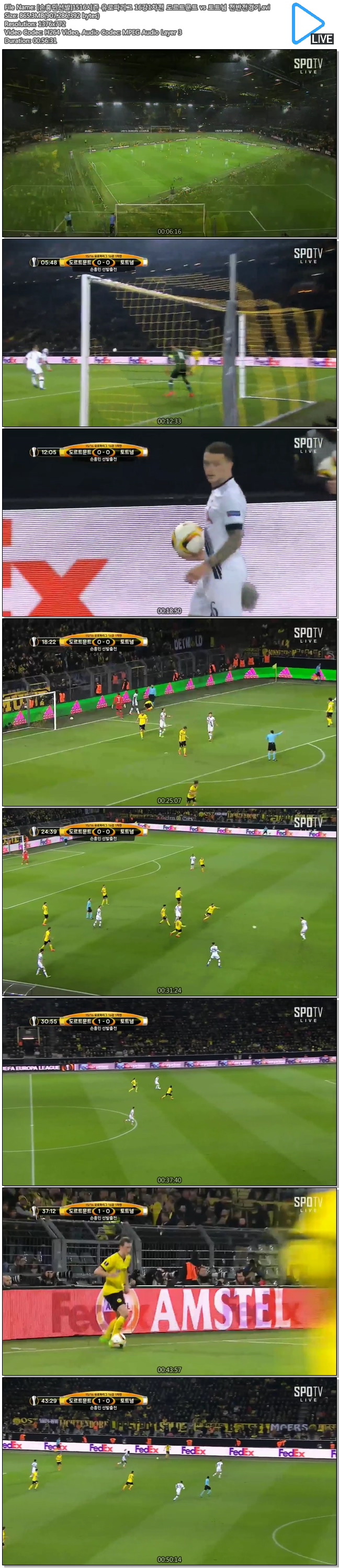 [손흥민선발]1516시즌 유로파리그 16강1차전 도르트문트 vs 토트넘 전반전경기.avi