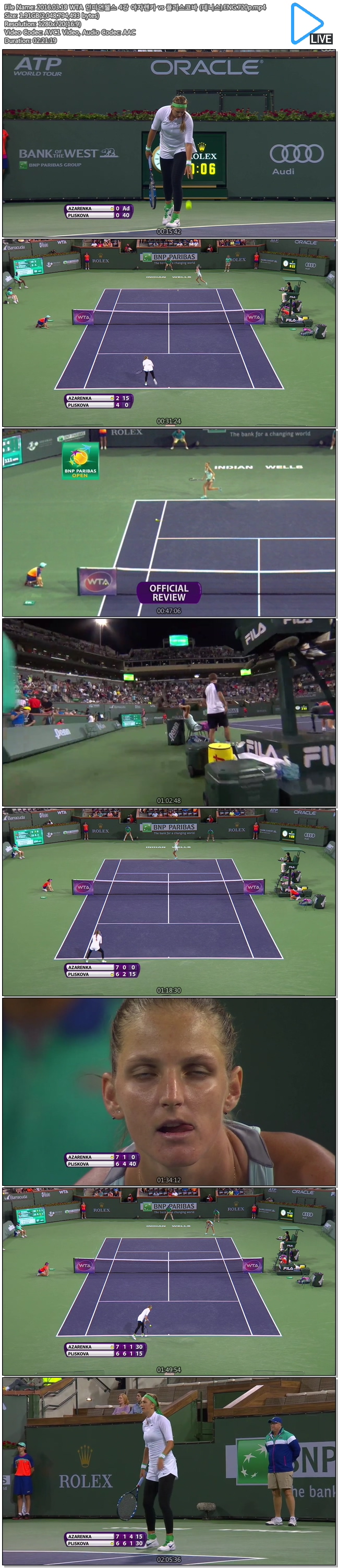 2016.03.18 WTA 인디언웰스 4강 아자렌카 vs 플리스코바 (테니스).ENG.720p.mp4