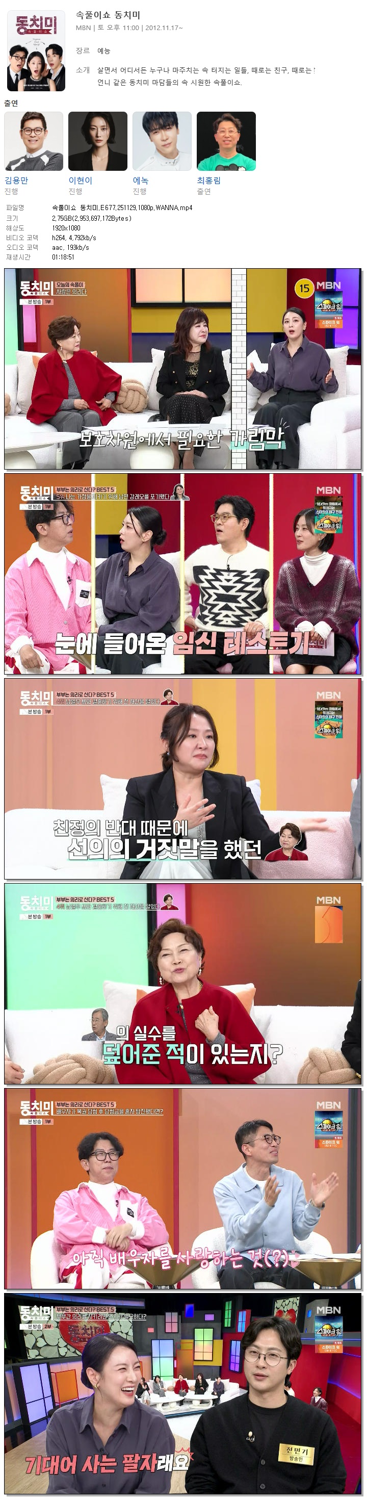 [MBN] 속풀이쇼 동치미.E677.251129.1080p.WANNA[김용림, 정미녀]