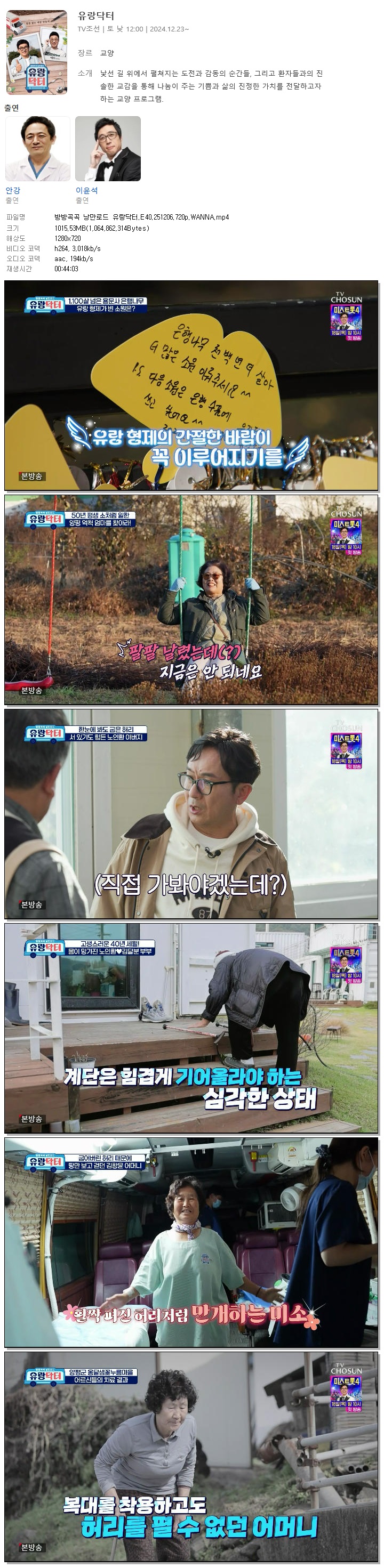 [TV조선] 방방곡곡 낭만로드 유랑닥터.E40.251206.720p.WANNA[안강, 이윤석]