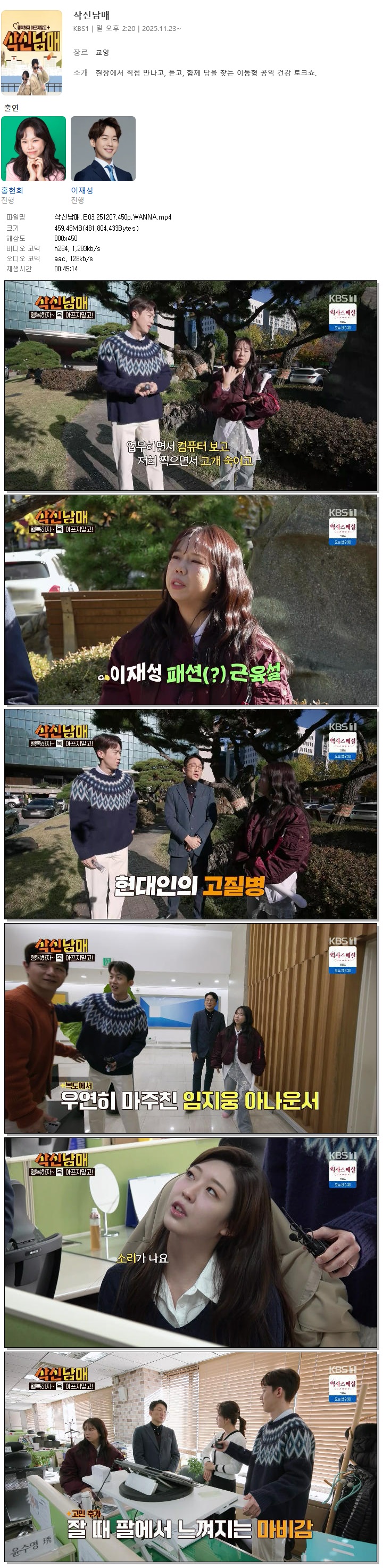 [KBS1] 삭신남매.E03.251207.450p.WANNA[홍현희, 이재성]