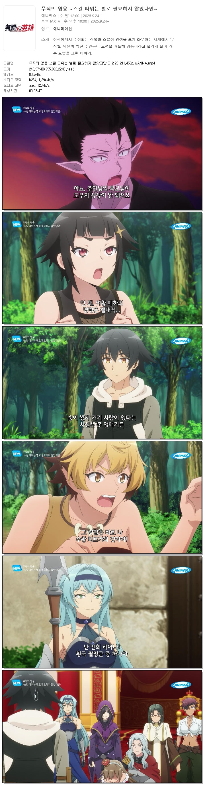 무직의 영웅 스킬 따위는 별로 필요하지 않았다만.E12.251211.450p.WANNA