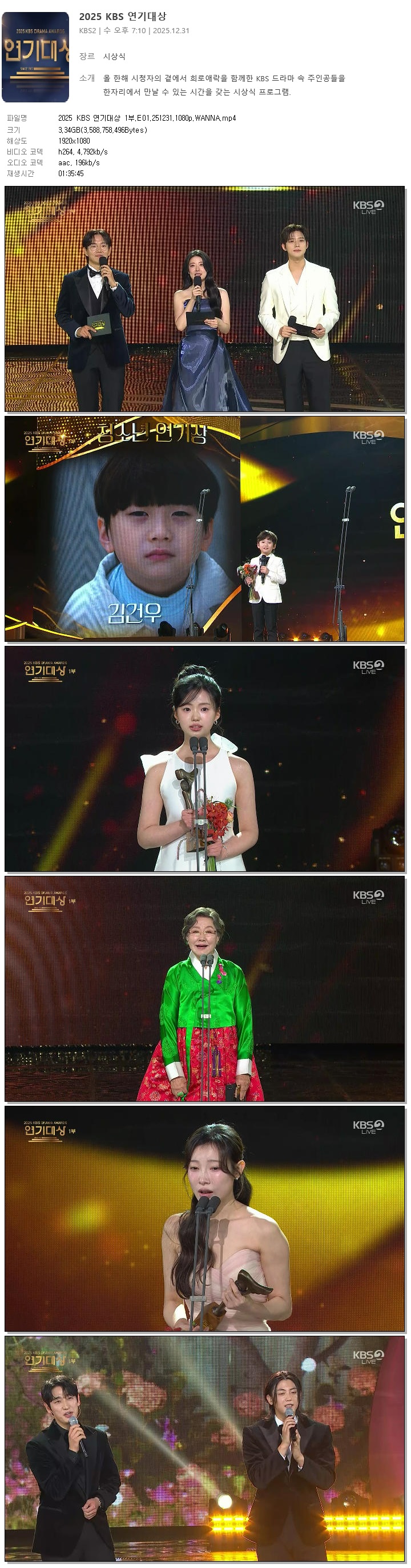 [KBS2] 2025 KBS 연기대상 1부.E01.251231.1080p.WANNA[장성규, 남지현]