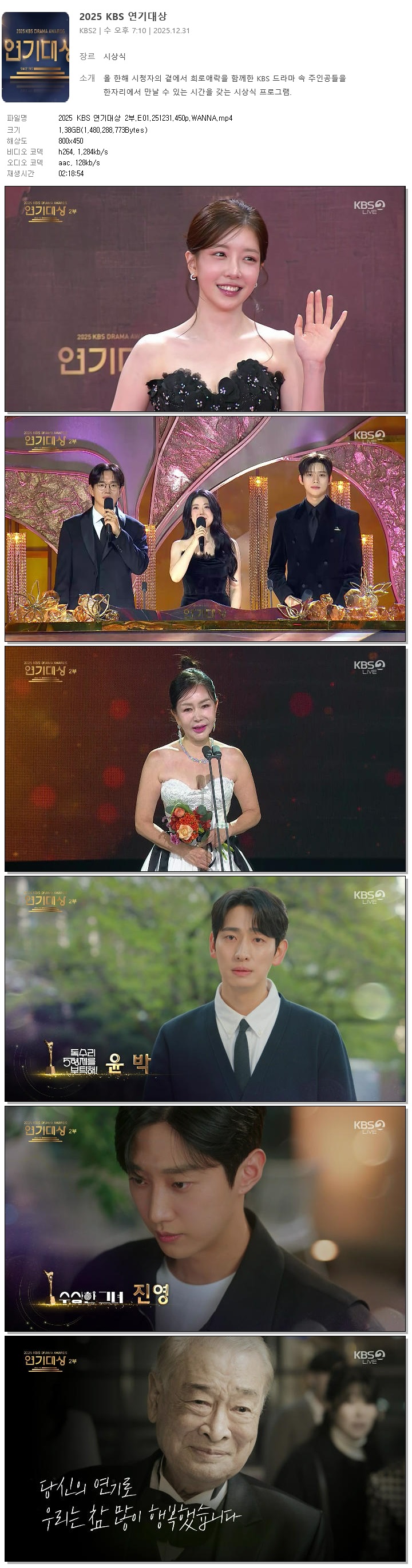 [KBS2] 2025 KBS 연기대상 2부.E01.251231.450p.WANNA[장성규, 남지현]