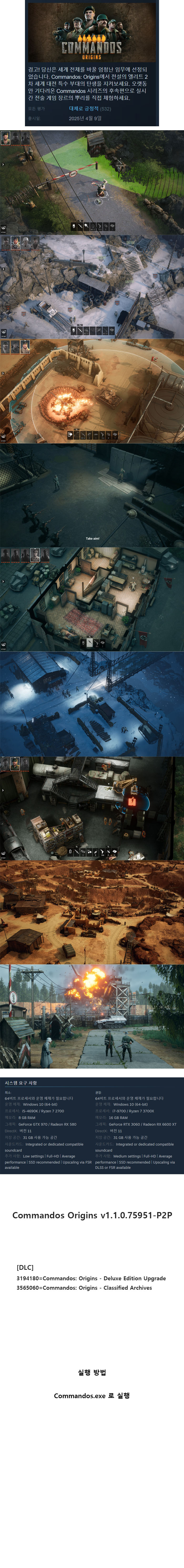 [무설치] 업데이트11-코만도스 오리진 V1.1.0.75951 한글/