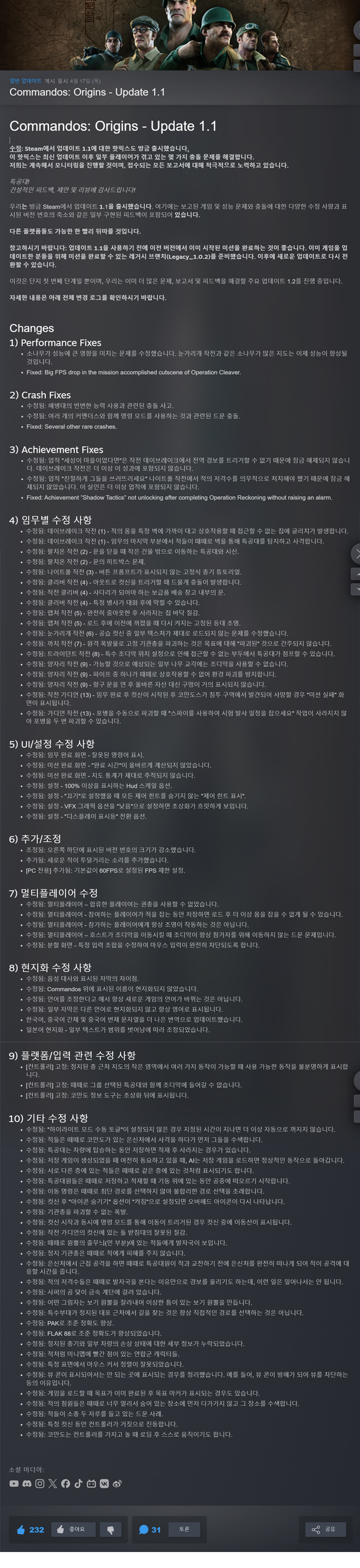 [무설치] 업데이트11-코만도스 오리진 V1.1.0.75951 한글