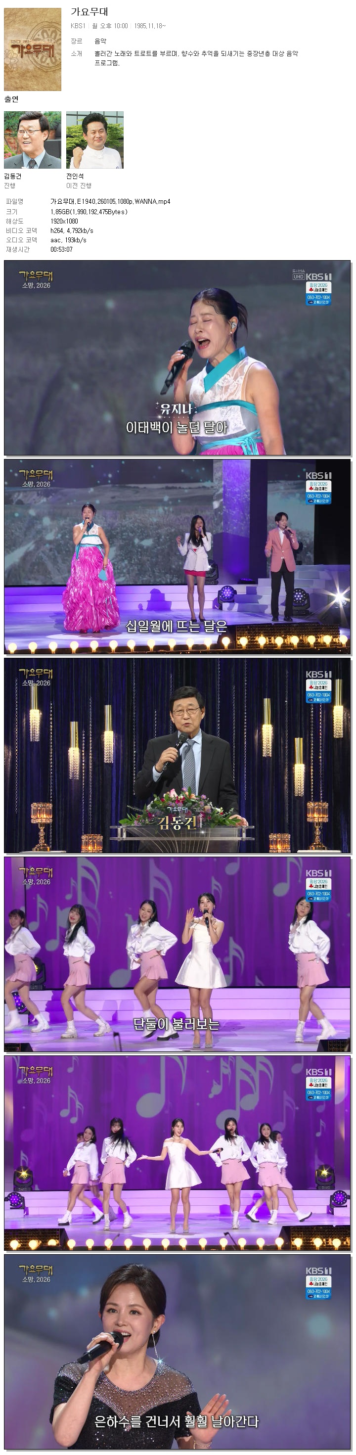 [KBS1] 가요무대.E1940.260105.1080p.WANNA[하춘화, 배금성]