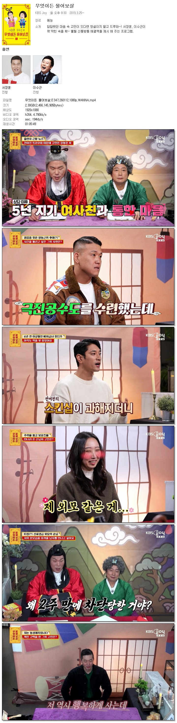 [KBS JOY] 무엇이든 물어보살.E347.260112.1080p.WANNA[서장훈, 이수근].mp4 2.3 G MP4 01:05:49 1920x1080
