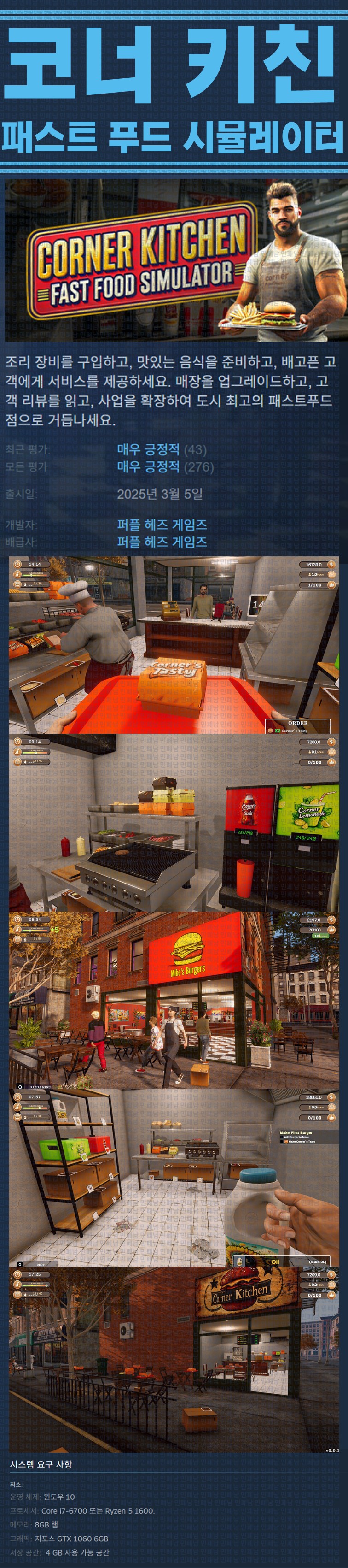 [한글무설치] 코너 키친 패스트 푸드 시뮬레이터 v1.2