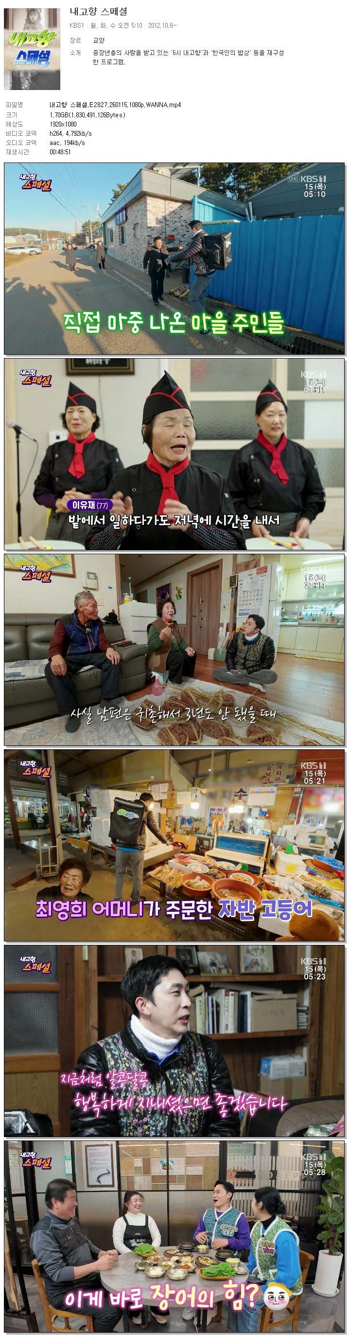 [KBS1] 내고향 스페셜.E2827.260115.1080p.WANNA