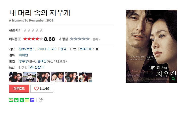 내 머리 속의 지우개 A Moment To Remember, 2004 (정우성.손예진)/