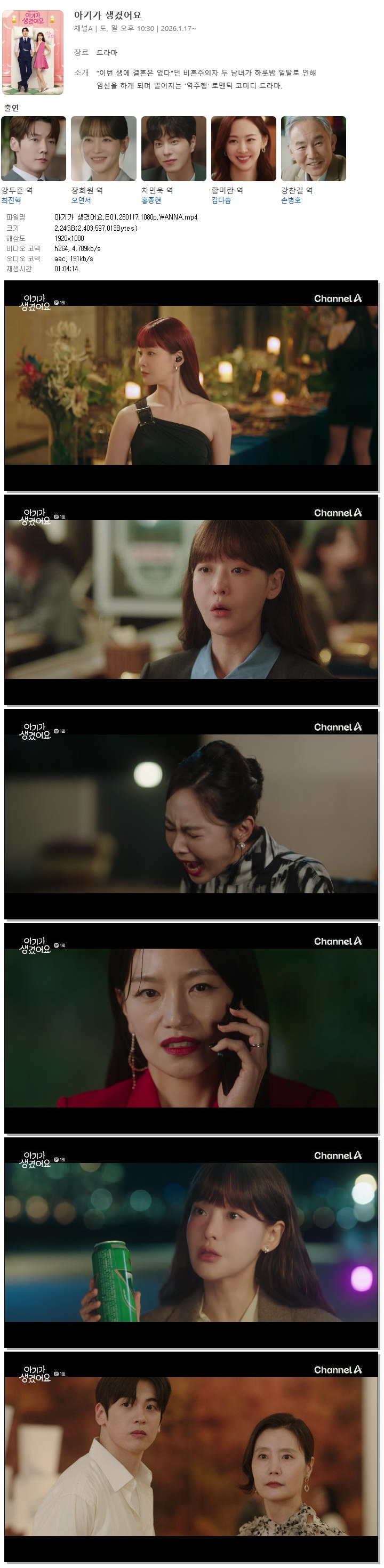 [채널A] 아기가 생겼어요.E01.260117.1080p.WANNA[최진혁, 오연서]