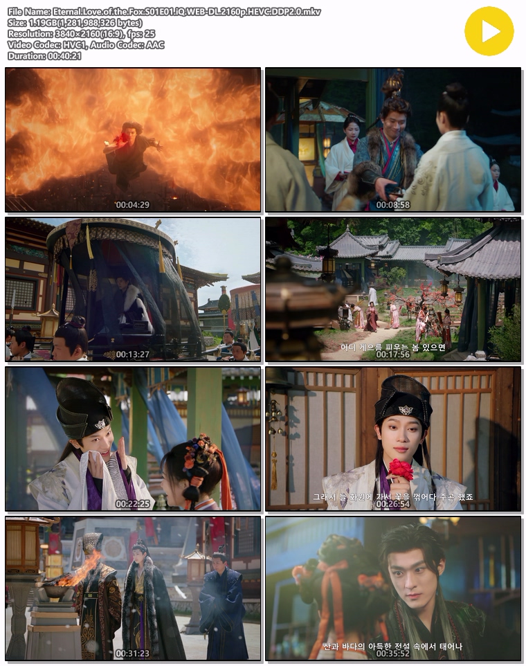 | Eternal.Love.of.the.Fox.S01E01.iQ.WEB-DL.2160p.HEVC.DDP2.0.mkv | 1.2 G | MKV | 00:40:21 | 3840x2160 |