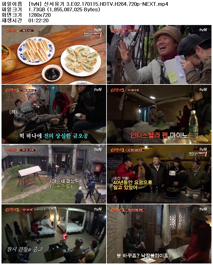 | 신서유기 3.E02.170115.HDTV.H264.720p-NEXT.mp4 | 1.7 G | MP4 | 01:22:20 | 1280x720 |
