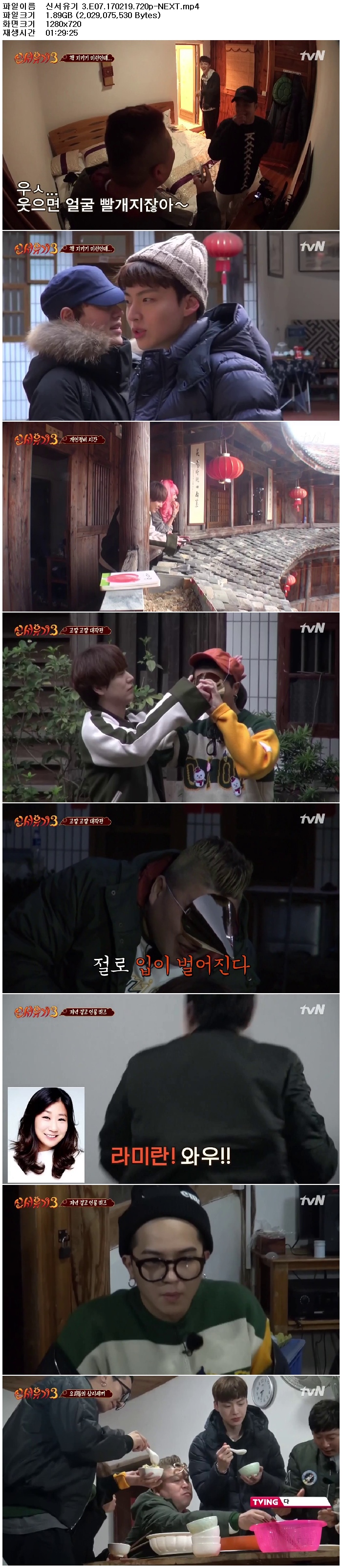 | 신서유기 3.E07.170219.720p-NEXT.mp4 | 1.9 G | MP4 | 01:29:25 | 1280x720 |