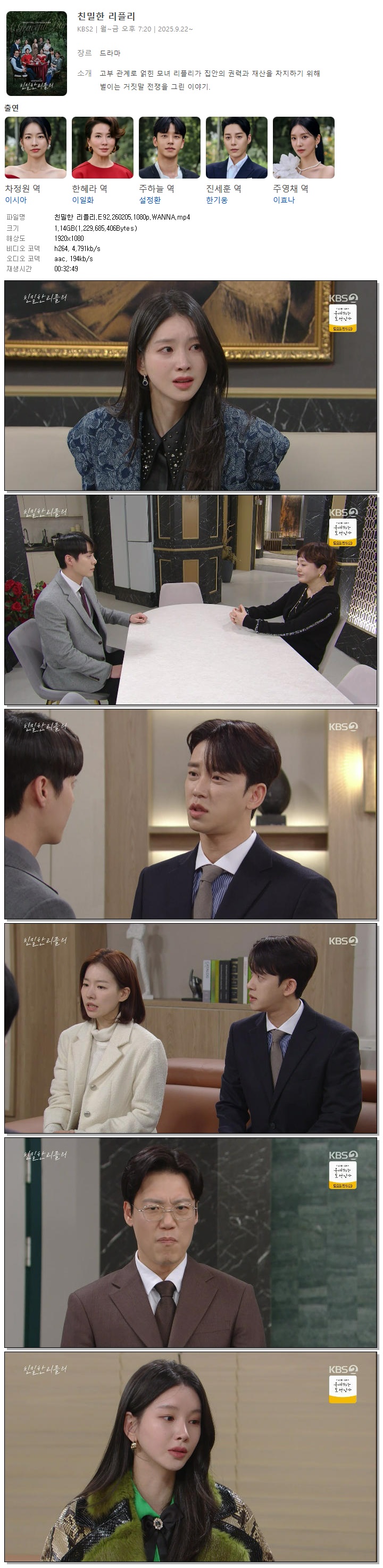 [KBS2] 친밀한 리플리.E92.260205.1080p.WANNA[이시아, 이일화]