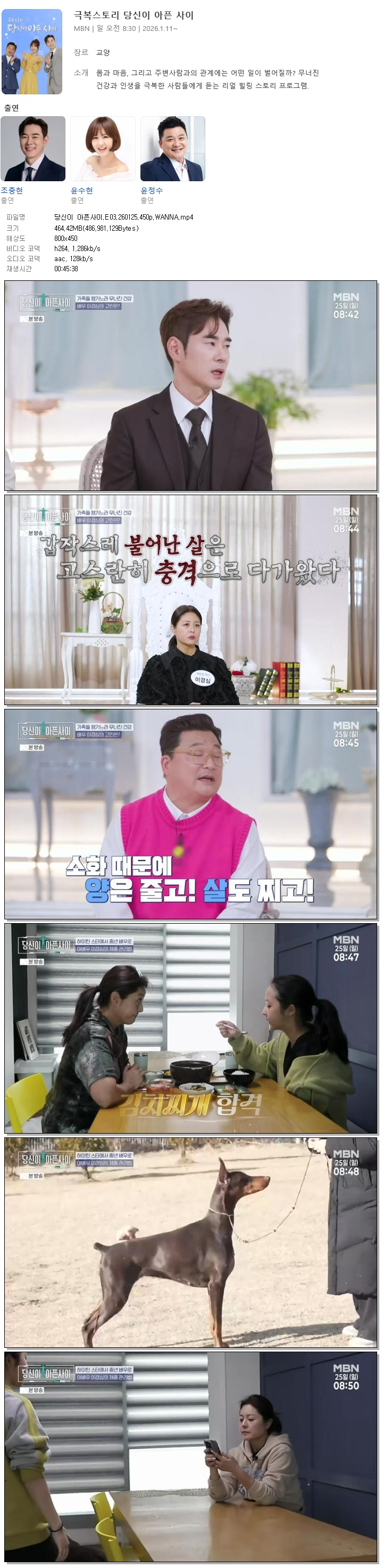 [MBN] 당신이 아픈사이.E03.260125.450p.WANNA[조충현, 윤수현].mp4 464.4 M MP4 00:45:38 800x450