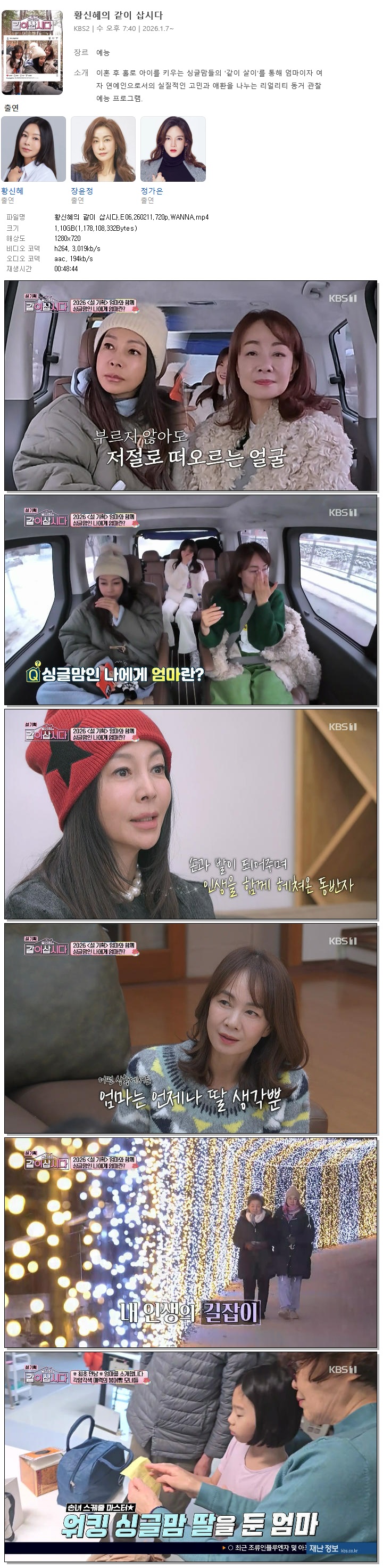 [KBS1] 황신혜의 같이 삽시다.E06.260211.720p.WANNA[황신혜, 정가은]