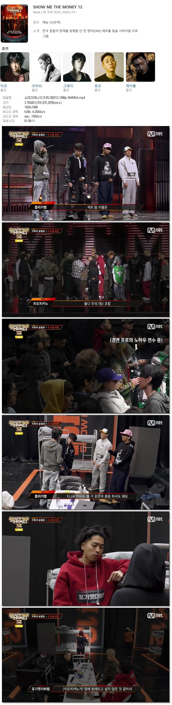 [M.net] 쇼미더머니12.E05.260212.1080p.WANNA[크러쉬, 박재범]