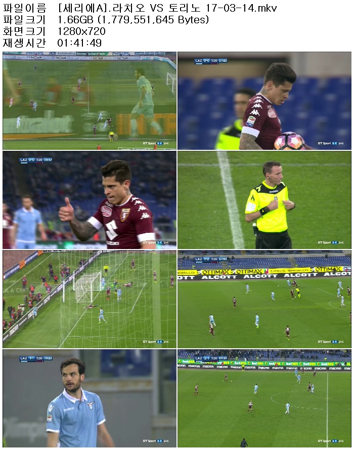 [세리에A].라치오 VS 토리노 17-03-14.mkv 1.7 G MKV 01:41:49 1280x720