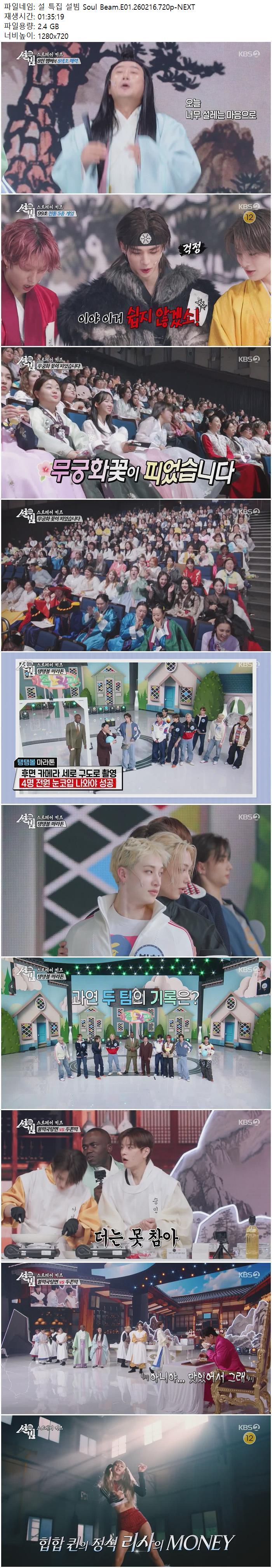 설 특집 설빔 Soul Beam.E01.260216.720p-NEXT.mp4 2.4 G MP4 01:35:19 1280x720