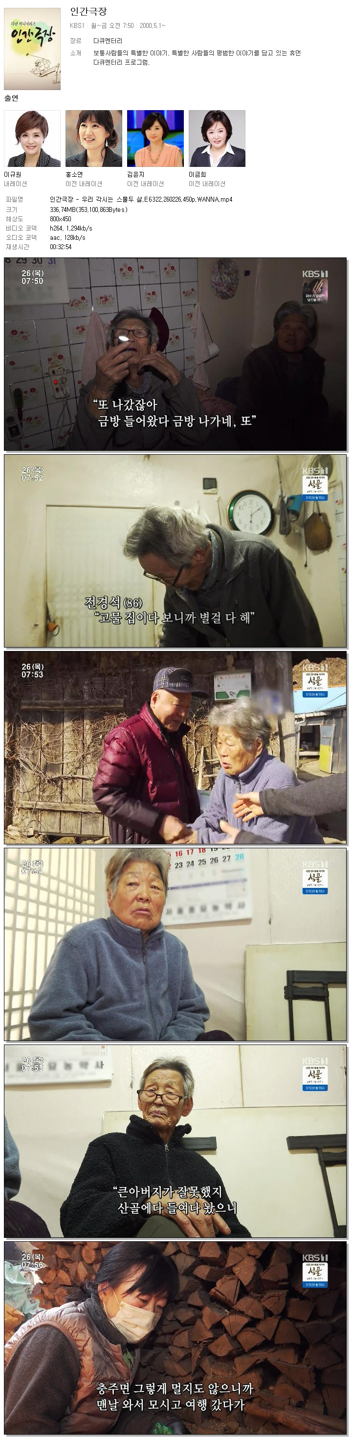 [KBS1] 인간극장.E6322.260226.450p.WANNA.mp4 336.7 M MP4 00:32:54 800x450