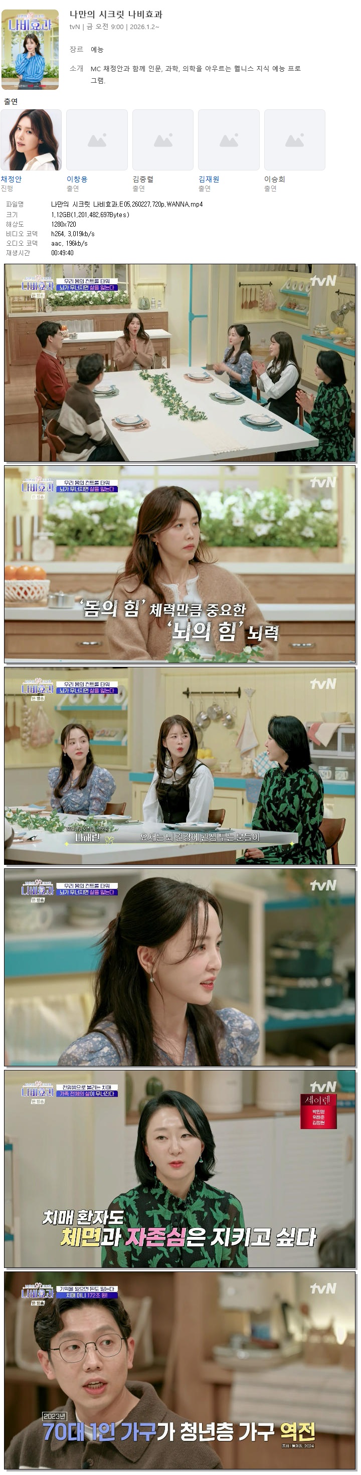 [TVN] 나만의 시크릿 나비효과.E05.260227.720p.WANNA[채정안, 이창용].mp4 1.1 G MP4 00:49:40 1280x720