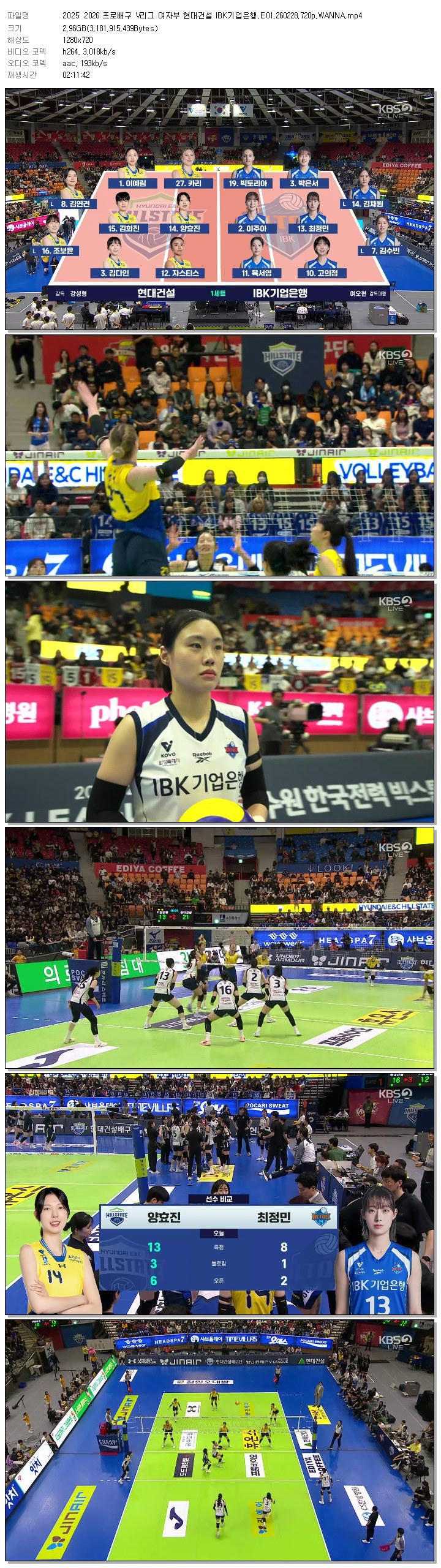 [KBS2] 2025 2026 프로배구 V리그 여자부 현대건설 IBK기업은행.E01.260228.720p.WANNA.mp4 3 G MP4 02:11:42 1280x720