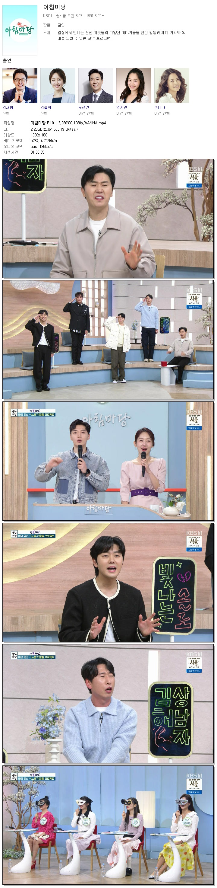 [KBS1] 아침마당.E10113.260309.1080p.WANNA[엄지인, 박철규]