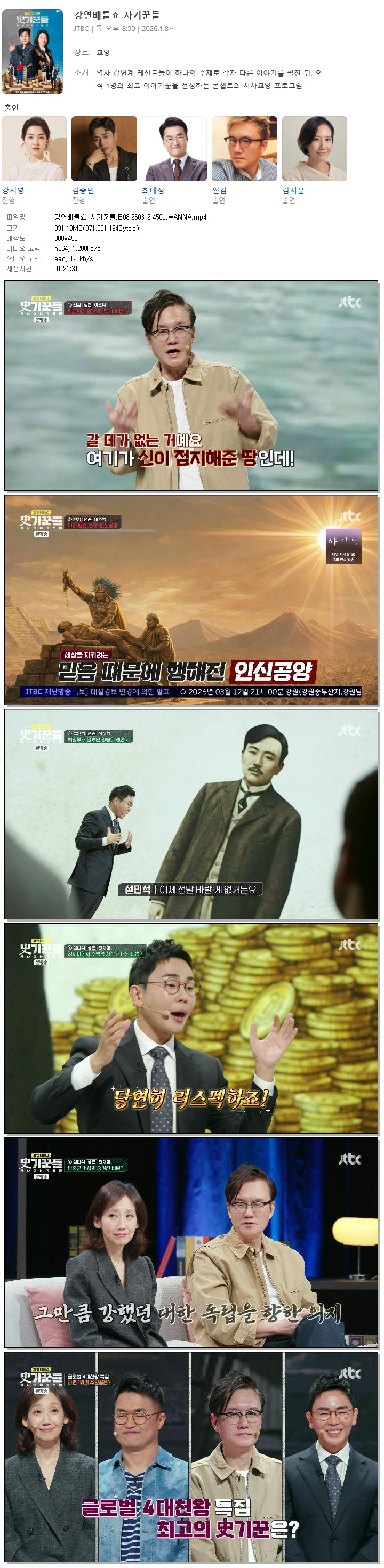 [JTBC] 강연배틀쇼 사기꾼들.E08.260312.450p.WANNA[설민석, 썬킴]