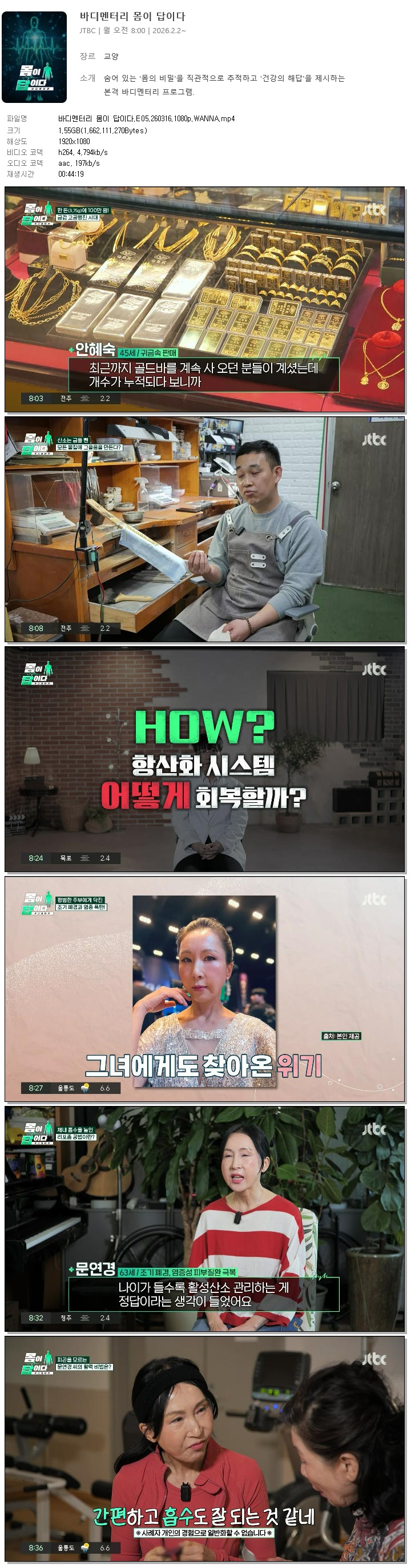 [JTBC] 바디멘터리 몸이 답이다.E05.260316.1080p.WANNA
