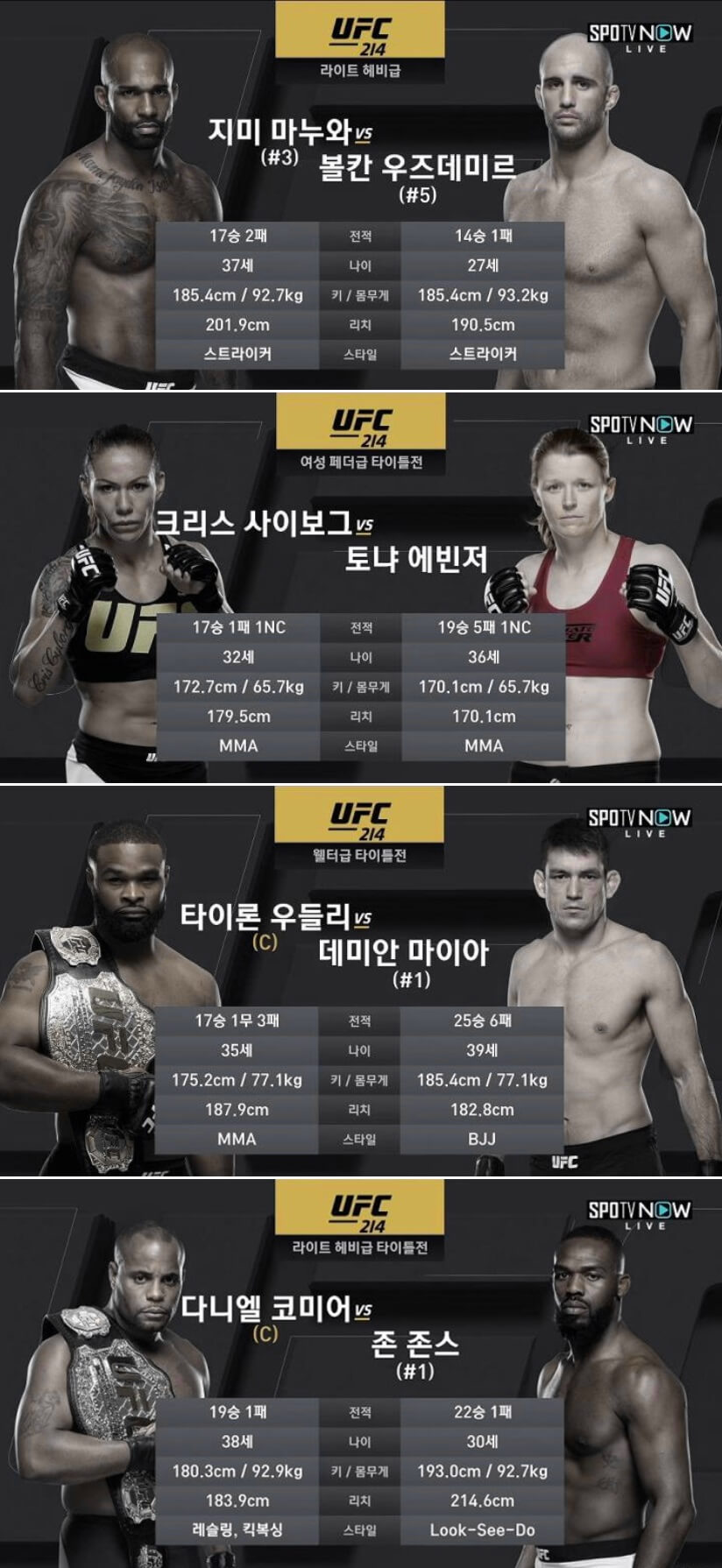 UFC 214 메인카드 존스 vs 코미어외 전경기모음 170730 [국내방송]