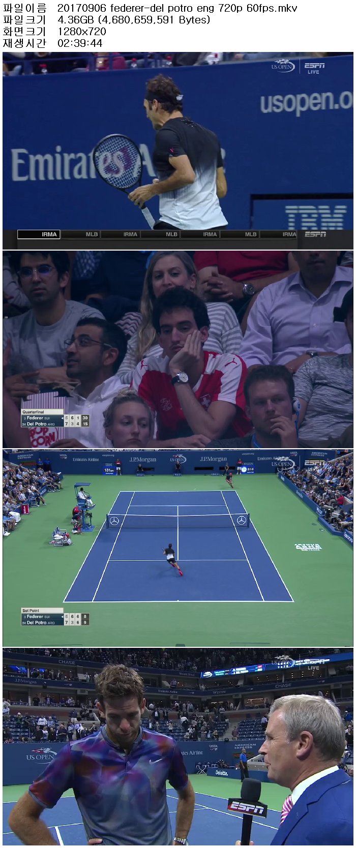 ico[테니스]2017 US오픈 8강 페더러 vs 델포트로 170907 [영어해설,초고화질,720P60fps]/