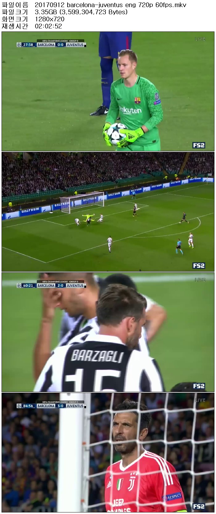 - ico1718시즌 챔피언스리그 조별예선 바르셀로나 vs 유벤투스 170913 [영어해설,초고화질,720P60fps]/