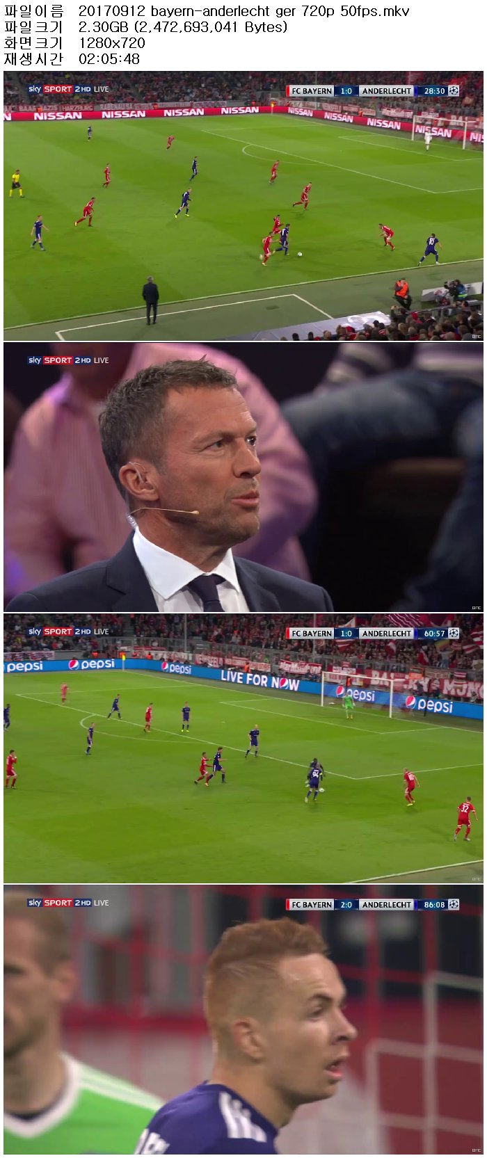 - ico1718시즌 챔피언스리그 조별예선 바이에른뮌헨 vs 안더레흐트 170913 [독일어해설,초고화질,720P50fps]/
