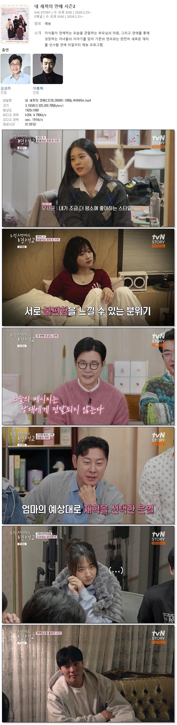 [TVN STORY] 내 새끼의 연애2.E06.260401.1080p.WANNA[이성미, 윤민수]