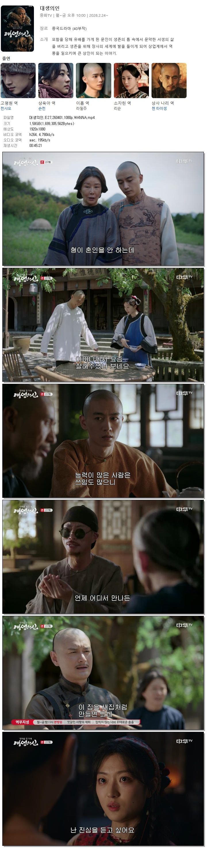 [중화TV] 대생의인.E27.260401.1080p.WANNA[천샤오, 손천]