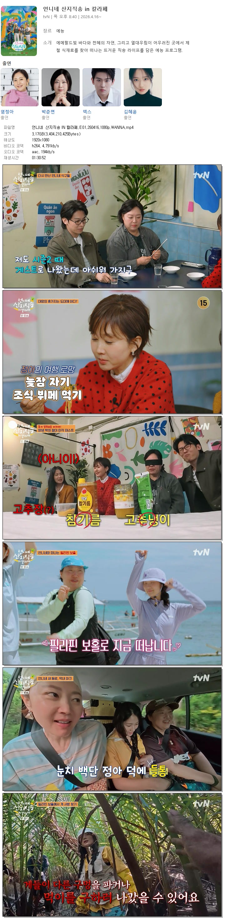 [TVN] 언니네 산지직송 IN 칼라페.E01.260416.1080p.WANNA[염정아, 덱스]