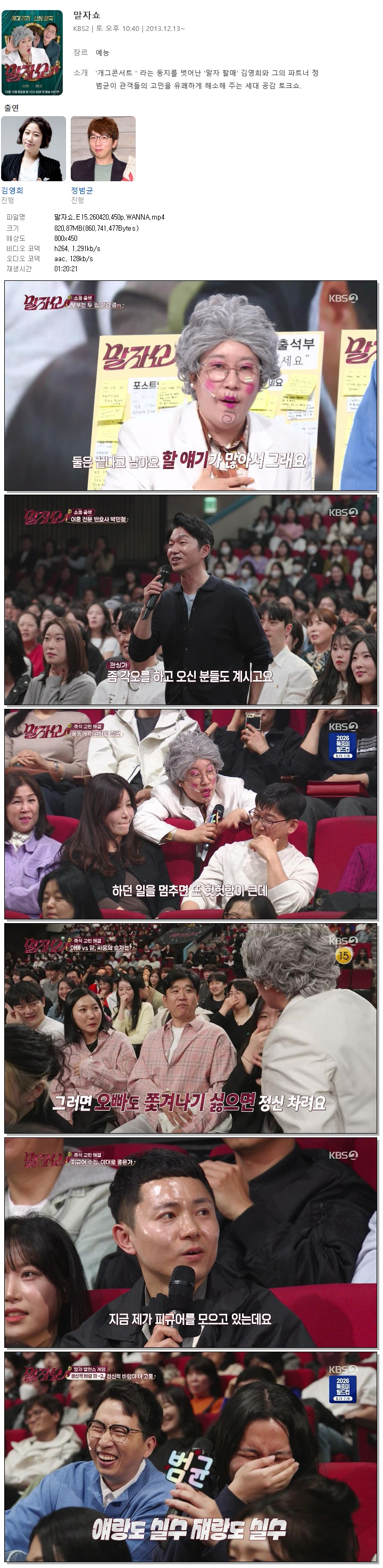 [KBS2] 말자쇼.E15.260420.450p.WANNA[김영희, 정범균]