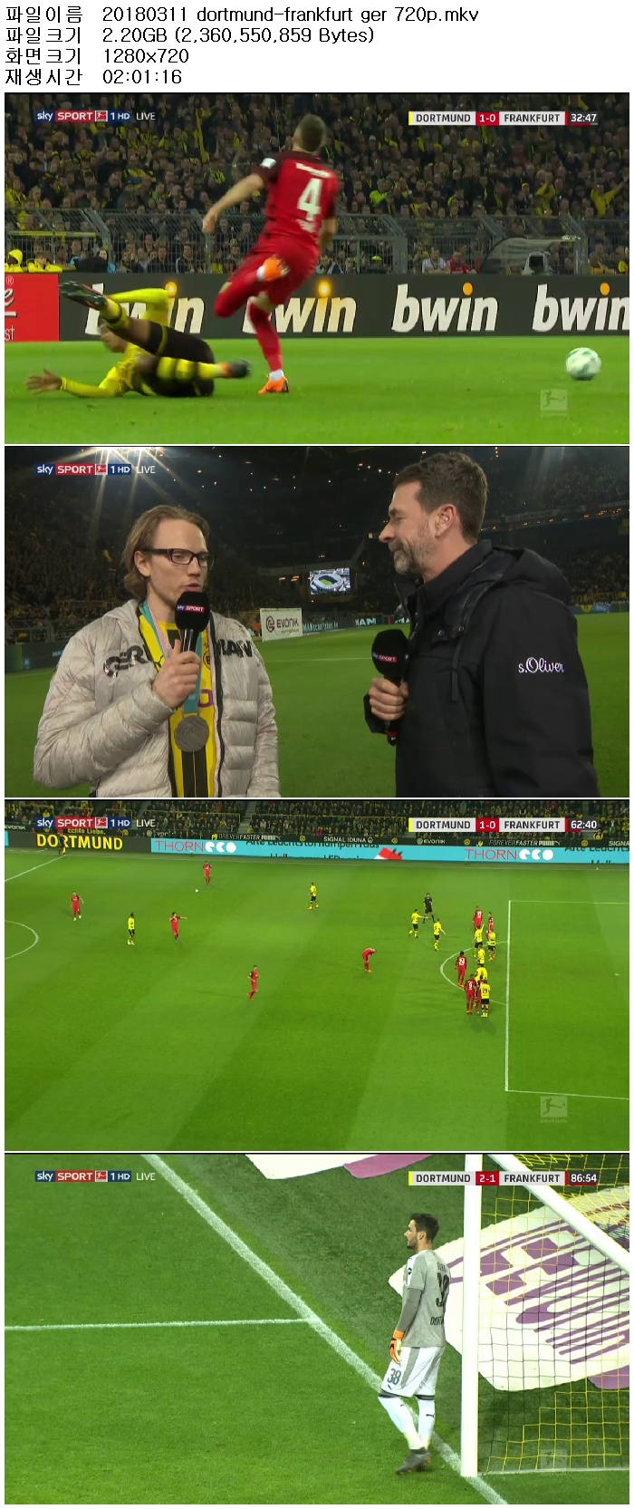 1718시즌 분데스리가 도르트문트 vs 프랑크푸르트 180312[독일어해설,고화질,720P]