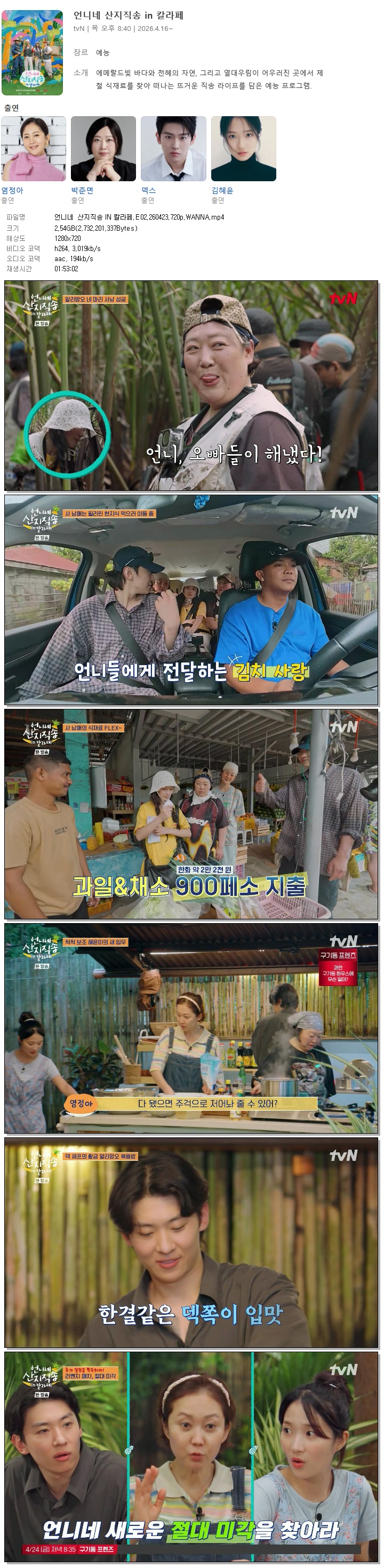 [TVN] 언니네 산지직송 IN 칼라페.E02.260423.720p.WANNA[염정아, 덱스]