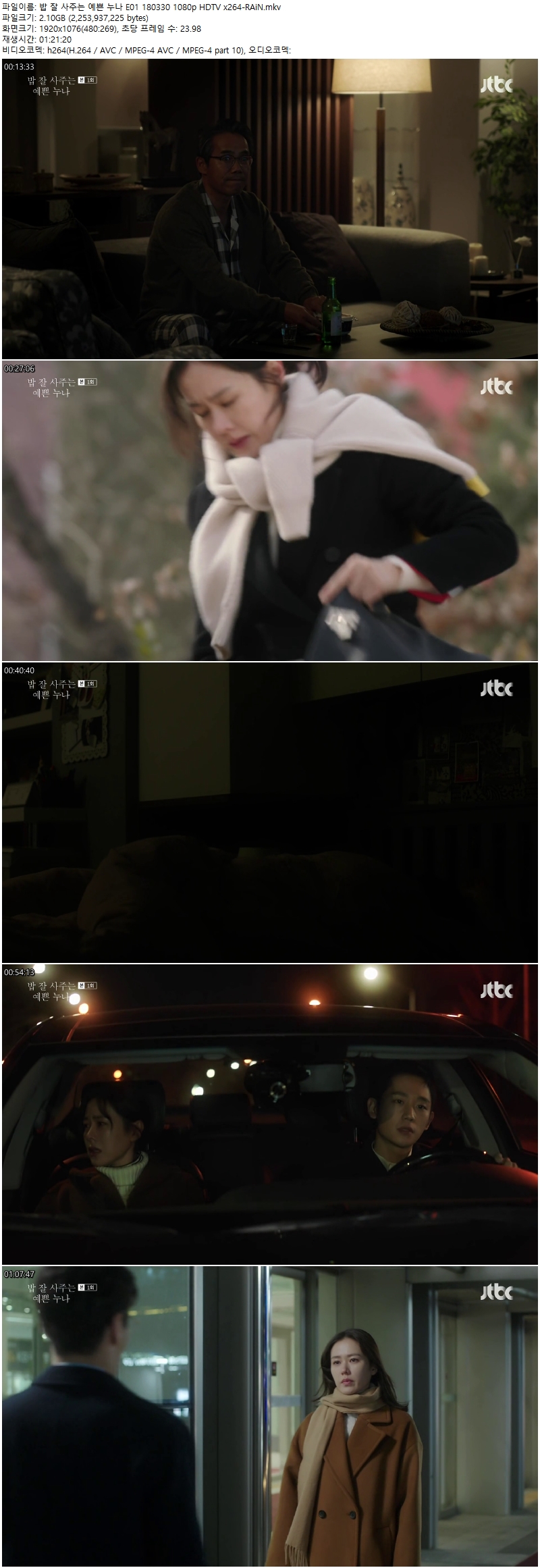 | 밥 잘 사주는 예쁜 누나 E01 180330 1080p HDTV x264-RAiN.mkv | 2.1 G | MKV | 01:21:20 | 1920x1080 |