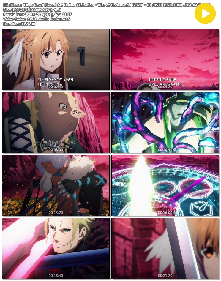 [Ohys-Raws] Sword Art Online Alicization - War of Underworld (2020) - 01 (BS11 1920x1080 x264 AAC).mp4 1 G MP4 00:24:00 1920x1080